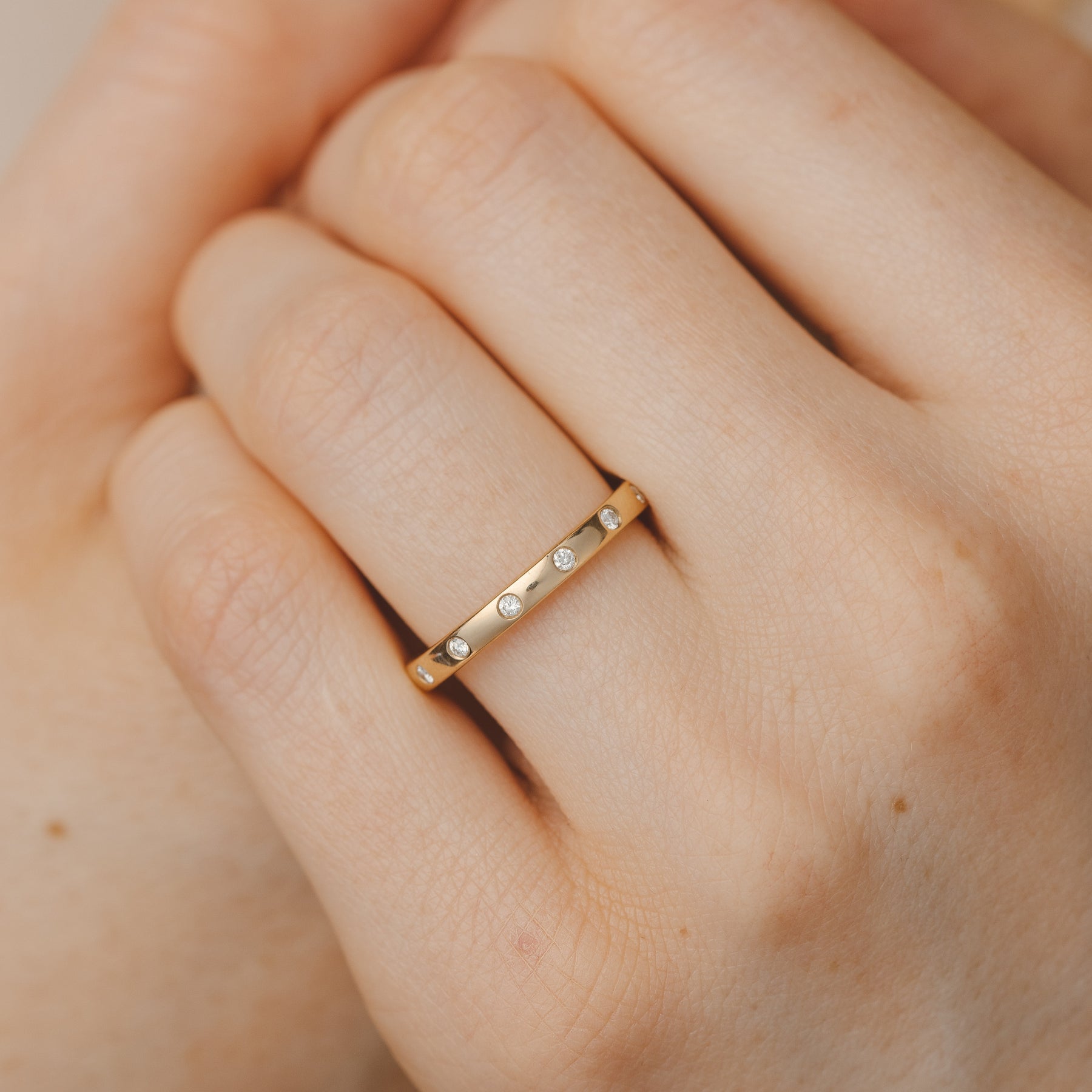 The beautiful Classic Luxe Diamond Inset Wedding Ring features diamonds set in a plain band. This ring is available in 18 ct White / Yellow / Rose Gold and Platinum 950 and is custom made to order.