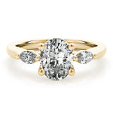 The beautiful Ebony Oval with Marquise Diamond Engagement Ring Setting features a trilogy style with east/west set marquise shaped diamonds. This stunning ring includes the side diamonds but does not include the centre oval diamond which can be selected separately.