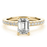 This beautiful Alyssa Emerald Diamond Engagement Ring Setting features side stones and a hidden diamond halo. This stunning ring includes the side diamonds and hidden halo, but does not include the centre emerald diamond which can be selected separately. A matching wedding band is also available for purchase.