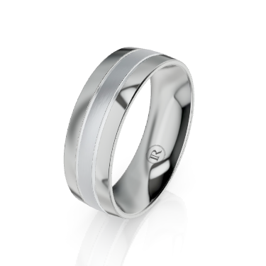 The stylish Cobalt Chrome and Wide Gold Centered Wedding Ring features cobalt chrome on the edges with a wide gold center stripe. As pictured, this ring is 7 mm wide and is made in a standard 1.6mm thickness.