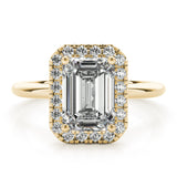 This beautiful Emerald Vienna Solitaire Diamond Engagement Ring Setting features a diamond halo and side stones to fit an emerald diamond. The setting cost includes the halo and side diamonds to fit up to a 1 ct centre Emerald diamond. The centre diamond is not included and can be purchased separately based on your requirements.  A matching wedding band is also available for purchase here