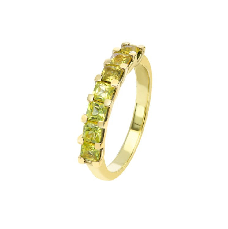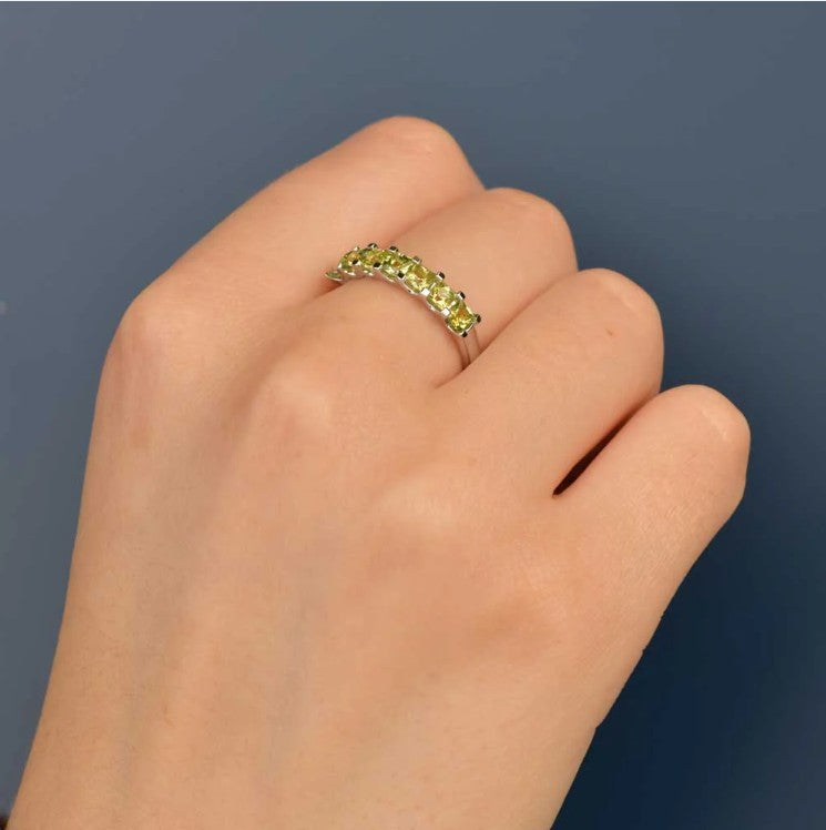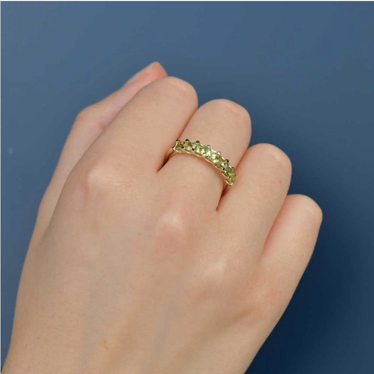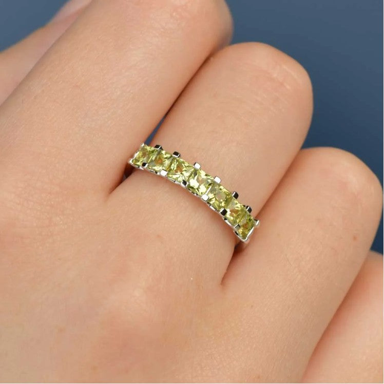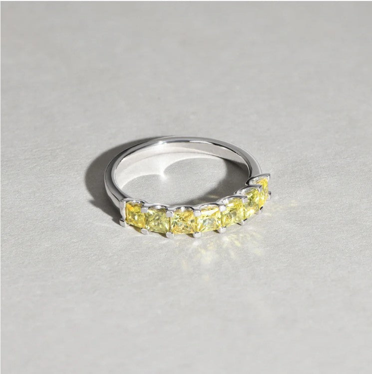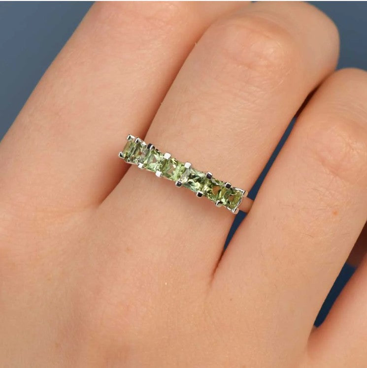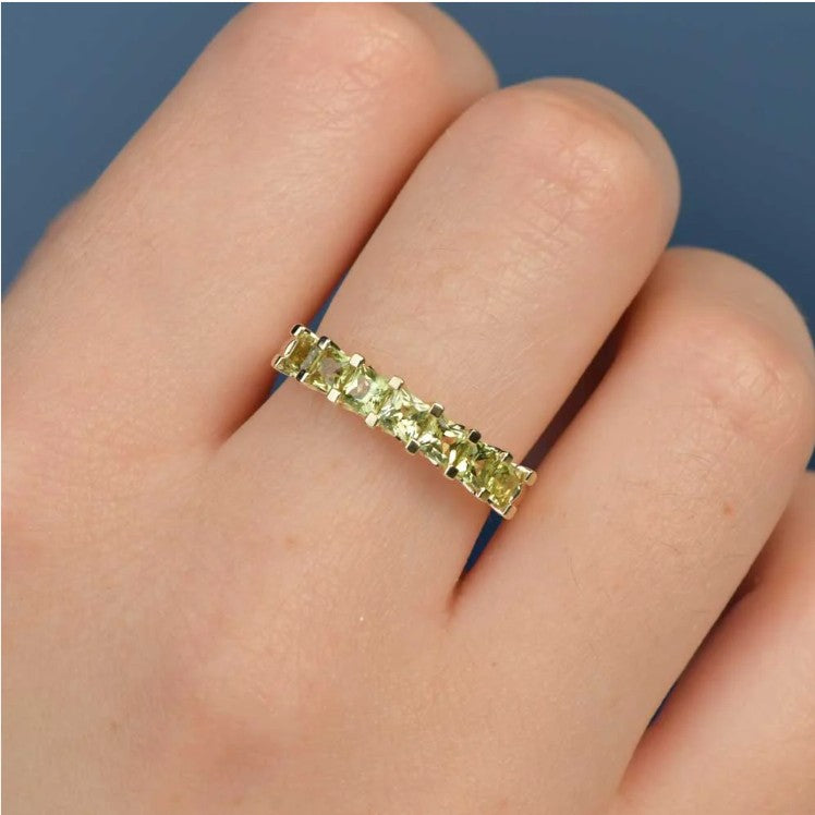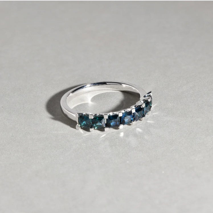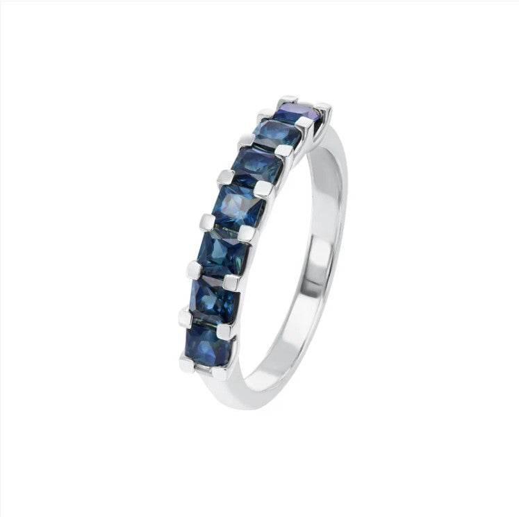 An elegant band of princess-cut Australian sapphires, the Iris ring makes a stunning wedding band or a beautiful addition to your daily style. Crafted in 9ct yellow or white gold, it allows you to choose the perfect match for your taste.