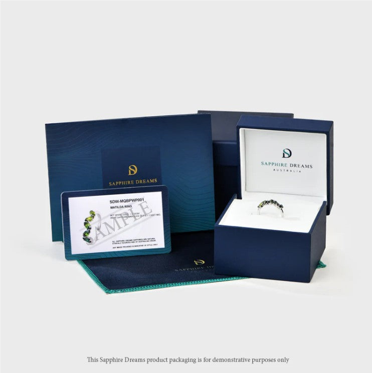 This jewellery piece is beautifully packaged and comes with a certificate card stating the specifications seen above as well as a guarantee that all sapphires are Australian and are ethically sourced.