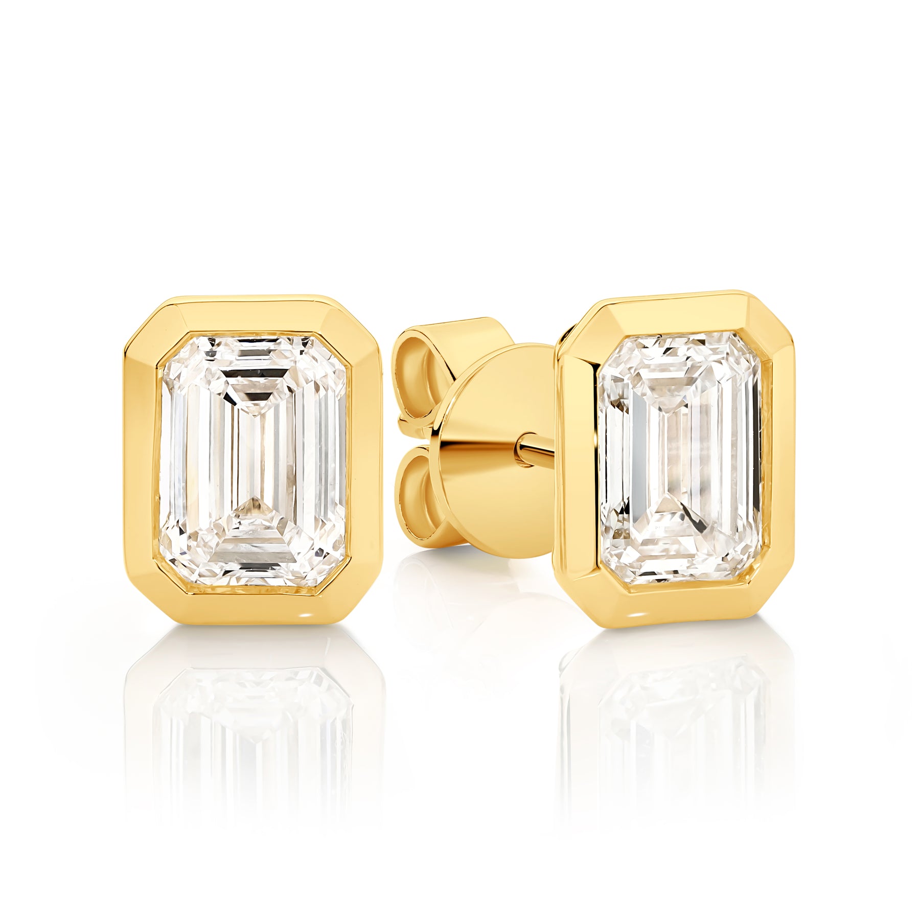 Radiating understated elegance, our bezel diamond earrings are a modern take on a timeless classic. Each brilliant-cut diamond is encased in a smooth, polished bezel setting that enhances its sparkle while offering everyday wearability.